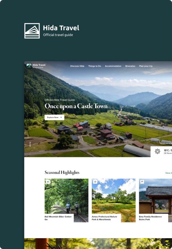 私たちが携わったプロジェクトの一部をご紹介します。私たちのクリエイティブ・スタジオは、顧客とエンドユーザーの双方に変革的な体験を提供し、日本での旅行をこれまで以上に素晴らしい体験にすることに情熱を注いでいます。
