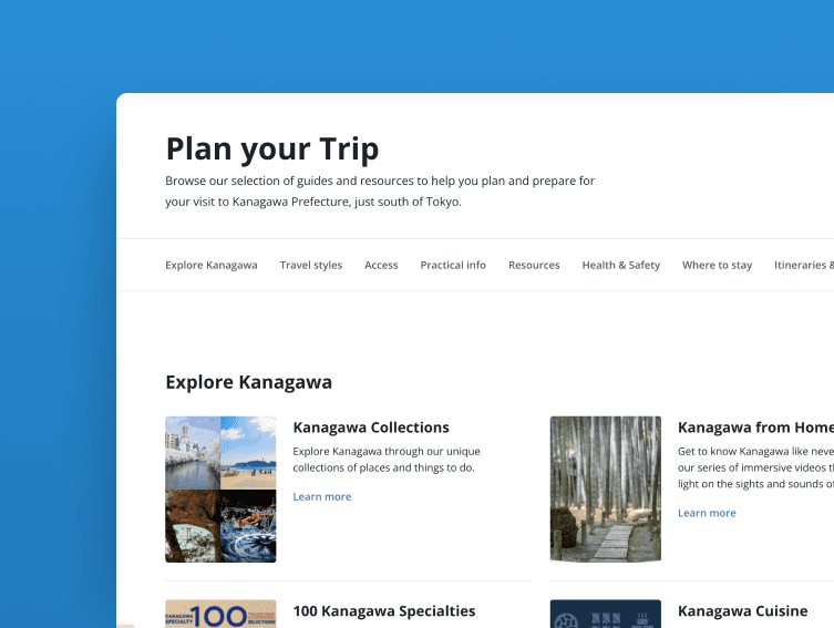 長年にわたり、私たちは神奈川県と協力し、同県の主要な観光ウェブサイトを継続的に更新・改良してきました。